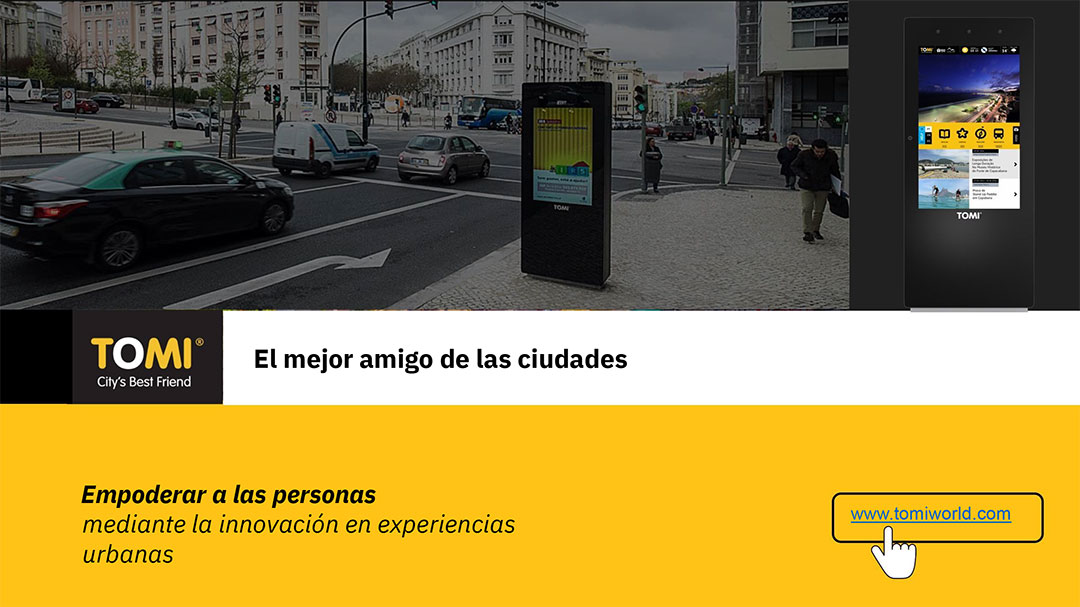 EasyDooh gestiona en exclusiva para España es sistema TOMI. Una solución urbana interactiva que proporciona información y servicios inteligentes en cualquier momento, en cualquier lugar. Es una solución innovadora e integrada de todo en uno, con una plataforma creada especialmente para las ciudades, lista para brindar a los ciudadanos lo que necesitan y brindar a las ciudades una forma fácil de comunicarse.